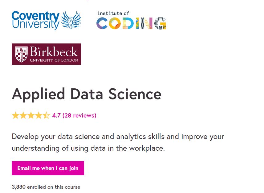 | 3. | Applied Data Science | ★★★★★ 4.7 | 12 Hours |