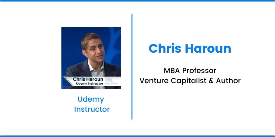 Chris Haroun is a well-renowned and highly competitive Udemy teacher. He is also the Founder and CEO of Haroun Education Ventures. This individual is known to be one of the highest rated professors on Udemy. So we can say that whatever the course you take from Udemy which is instructed by Mr Haroun is a worth taking course. He is the former Goldman Sachs employee and has raised around $1bn in his career.