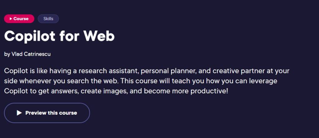 In this “Copilot for Web” course, you will understand how to use Microsoft Copilot to become more productive in your daily life.