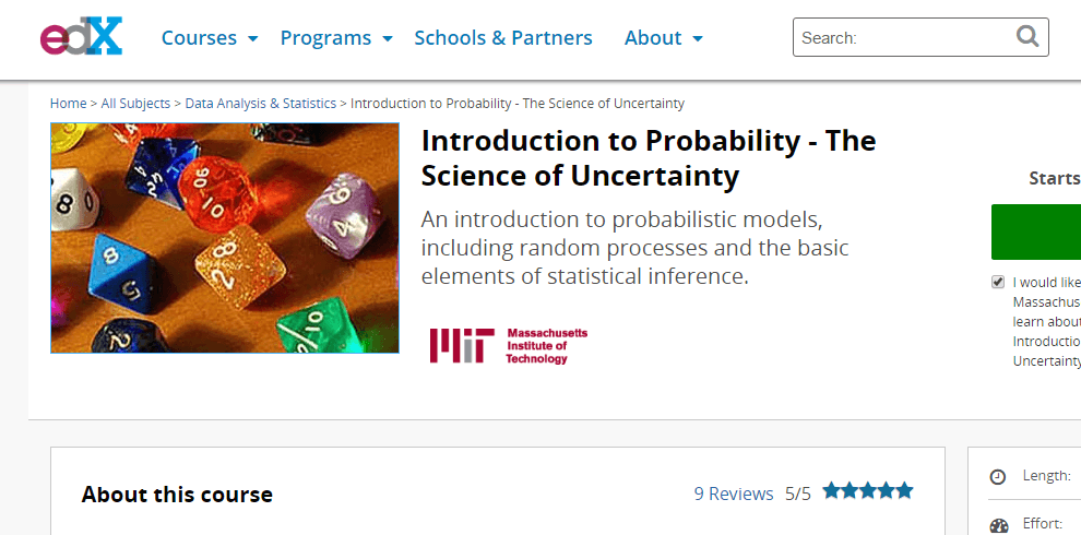 The contents of this course are essentially the same as those of the corresponding MIT class (Probabilistic Systems Analysis and Applied Probability) — a course that has been offered and continuously refined over more than 50 years. It is a challenging class, but it will enable you to apply the tools of probability theory to real-world applications or your research. In our latest post, we delve into the realm of probability education, offering a comprehensive guide to accessing “Free Probability Courses with Certificates.